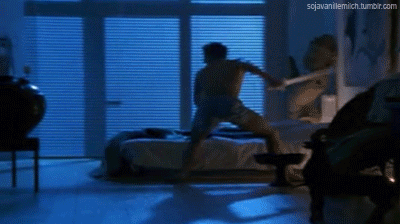 Methos. Think he was startled by Amanda showing up at his place in the middle of the night.