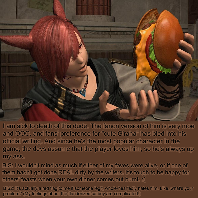 B!S2: It's actually a red flag to me if someone legit, whole-heartedly hates him. Like, what's your problem? (My feelings about the flanderized catboy are complicated.)