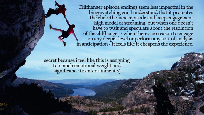 (Anonymous) 2026-04-22 12:24 am (UTC)(link)secret because i feel like this is assigning too much emotional weight and significance to entertainment :(