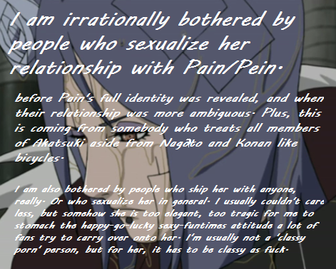 Agreed. There are only a handful of fics that I've read where they get it just right--the sadness and loss and everything in-between. I just can't see sexy funtimes with her. Not at all.
