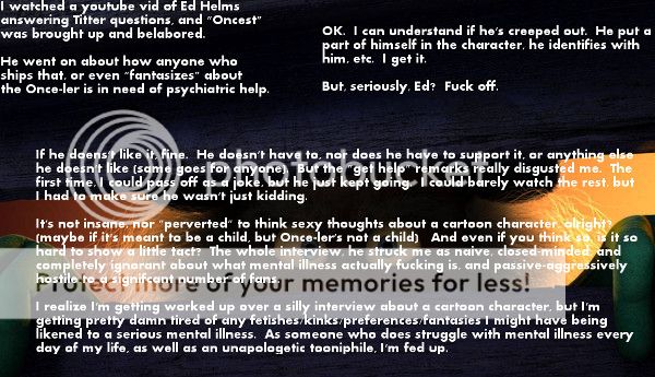 I'd say it's not only SPN that has a kinkshaming problem. I've seen it crop up in Doctor Who, sadly. And I bet it exists in other fandoms as well because newer fen are quick to judge before backbuttoning out of something they don't understand or don't want to read. Also, they don't understand the history of "choose not to warn."